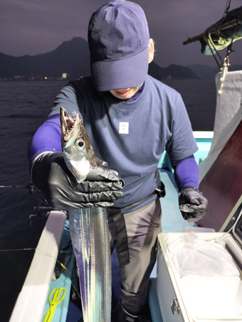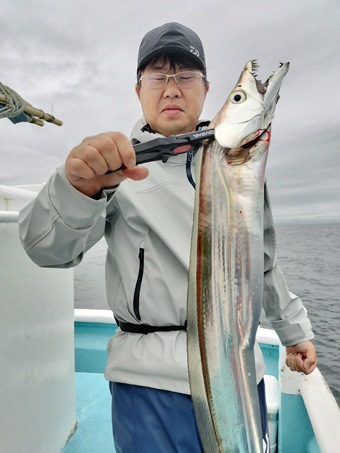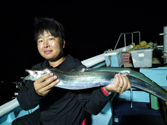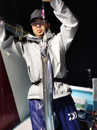 タチウオ、沼津港近辺のポイントほぼ1番乗り、仕掛けを変えればイカのお土産も。