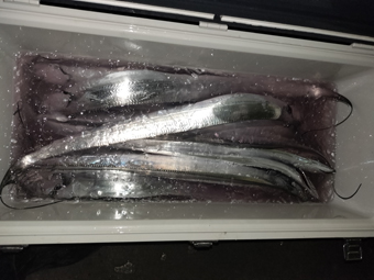 4日、 待機時間の置き竿時にタチウオが釣れた為 早めに切り替えました。後半から活性上がる。マルイカ、スルメイカ、カマス、アジ、シイラの交じりも。